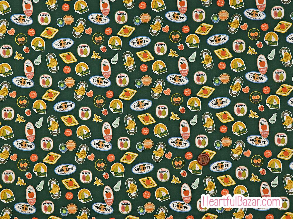 [oc]COTTON+STEEL ORCHARD フルーツステッカー ハンターグリーン