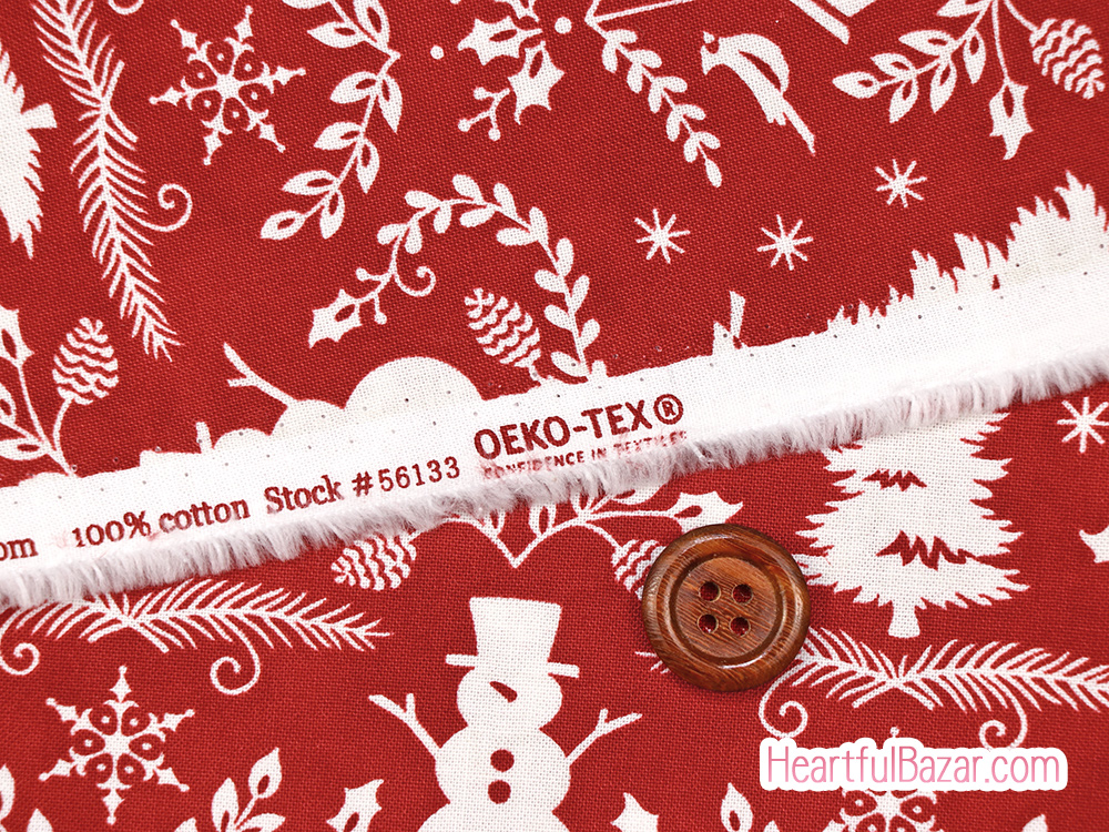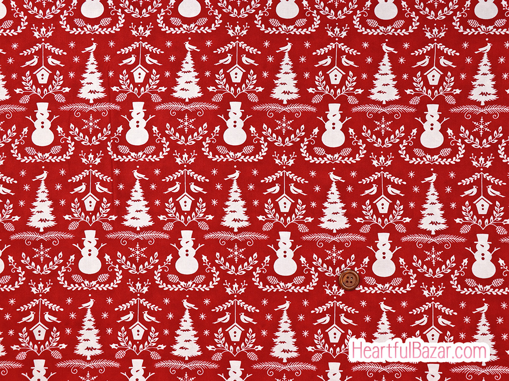 ベリーレッド地にアイボリーで描かれたクリスマスらしいモチーフのダマスク柄です。