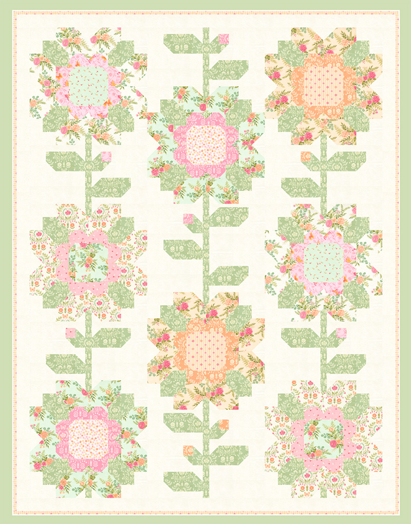 やさしさにあふれたモチーフが柔らかなコーラルとピンク、セージとユーカリのグリーンで彩られました。