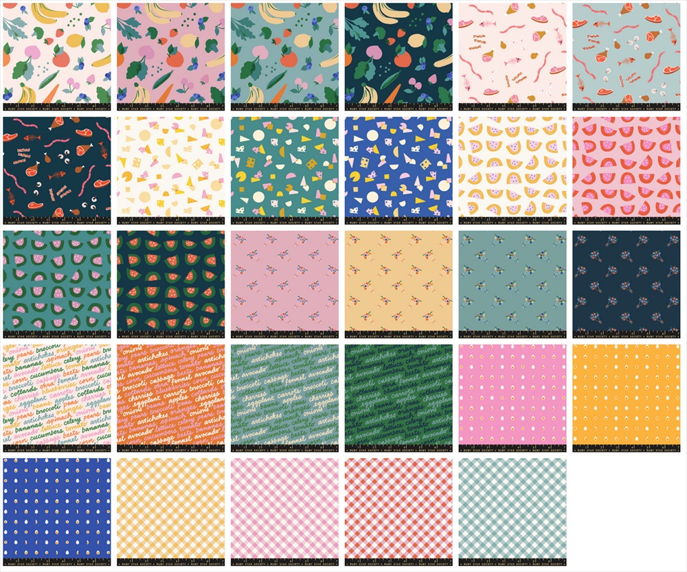 すいか、たまご、チーズ、肉や野菜などなどのキッチンをテーマにしたプリントがかわいいシリーズです。
