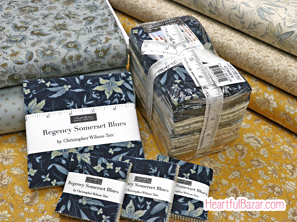moda/Regency Somerset Blues/Bridgewater Blender Leaf/PARMA GRAY