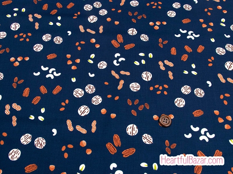 ネイビーブルー地にシンプルな色合いのナッツがたくさん!