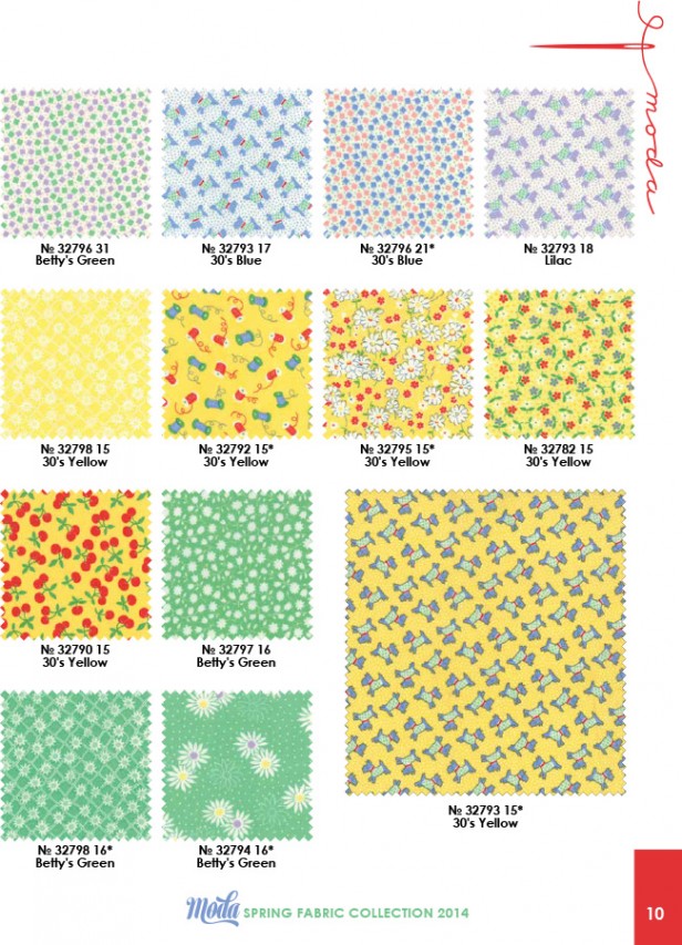 優美なデイジーと陽気なチェリーを取り入れたフィードサックの花柄から、元気で可愛らしいスコティッシュ・テリア犬、それに螺旋を描く糸…本当に愛らしい新デザインです。