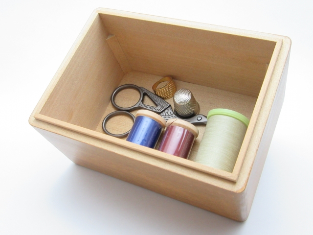 [受注制作]木製小さめサイズの裁縫箱(色:ウォルナット)