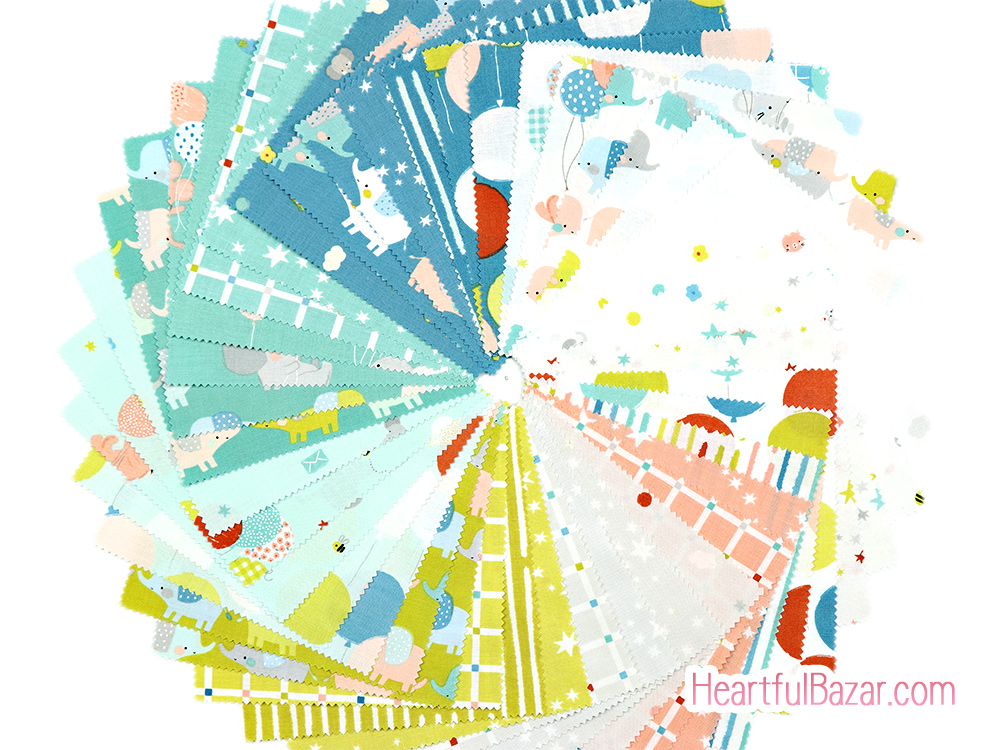 ベビーキルトにおすすめのふんわりかわいい象のイラストと、甘すぎない色合いがとってもすてきなコレクションです。