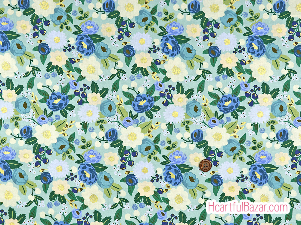 COTTON+STEEL/Vintage Garden/Vintage Blossom/Mint Metallic Fabric