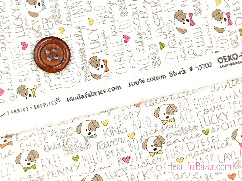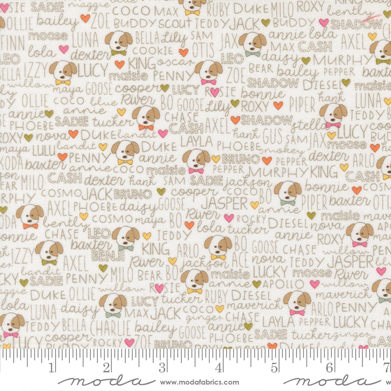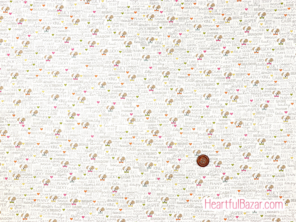 アイボリー地にわんこの名前がぎっしり並んだ、ほっこり系のプリントです。