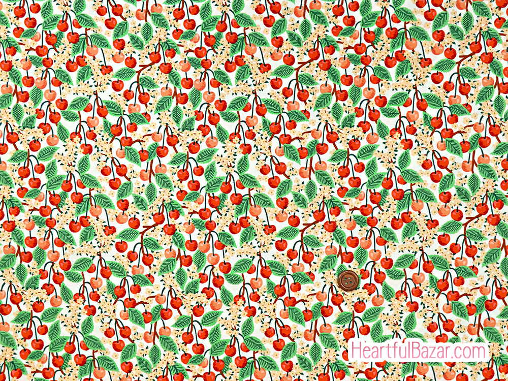 さくらんぼの実が濃淡鮮やかに描かれたかわいいプリント。