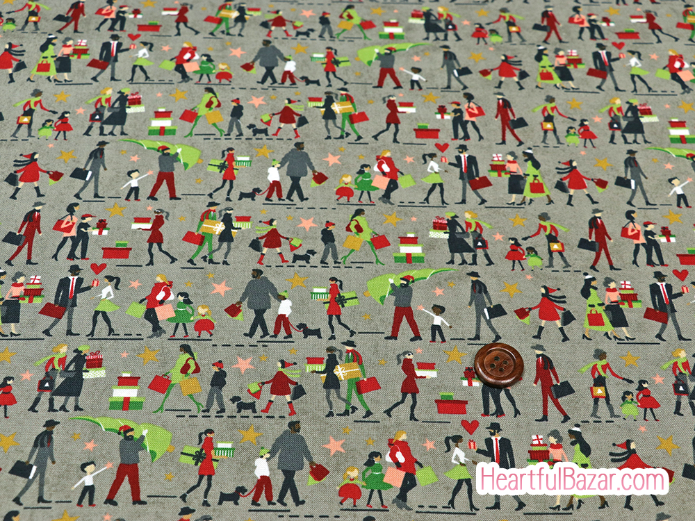 ベーシックグレイのクリスマスシリーズ「ハッスルアンドバッスル」からホリデーのショッピング風景を描いた柄をセレクトしました。