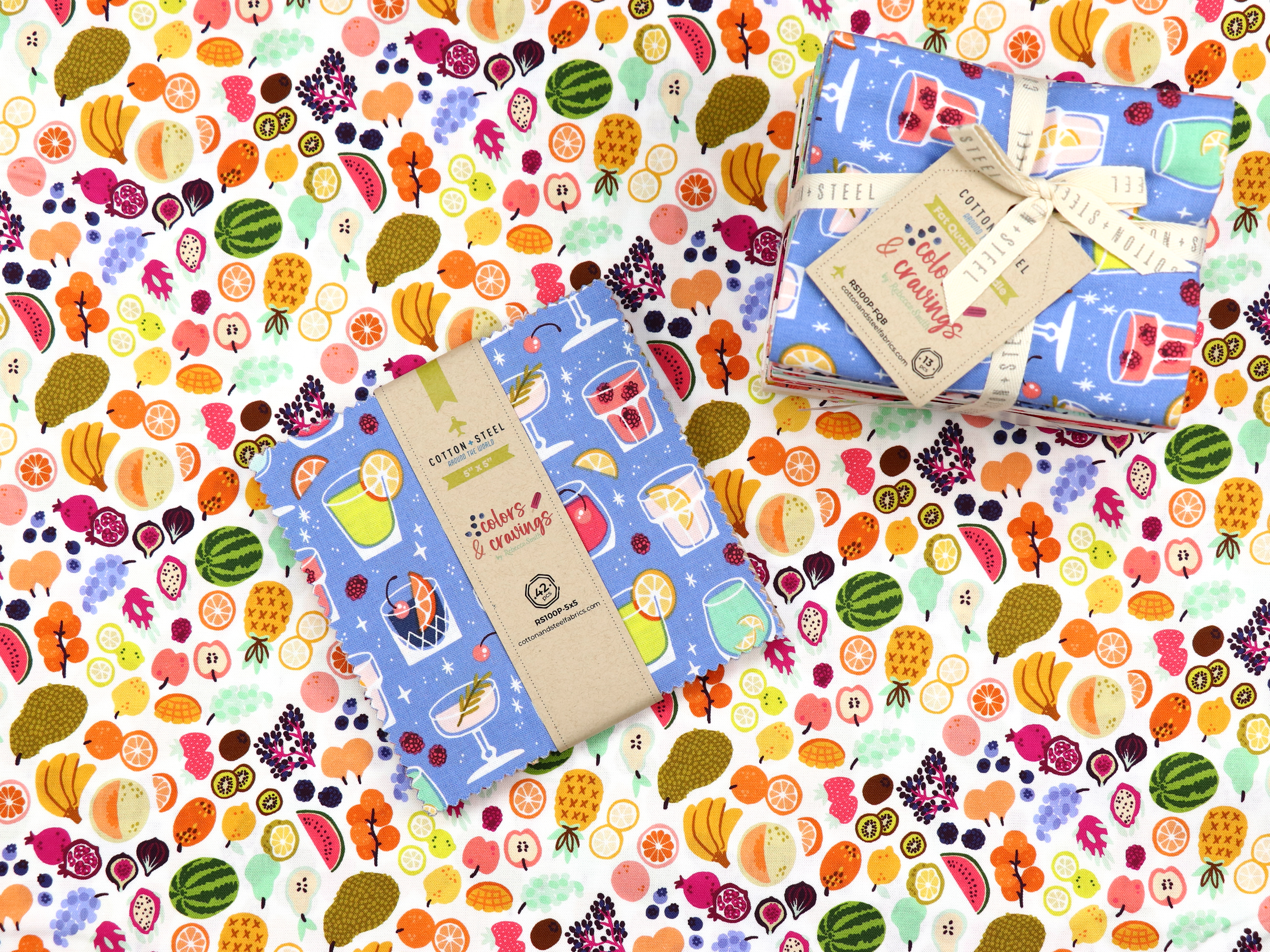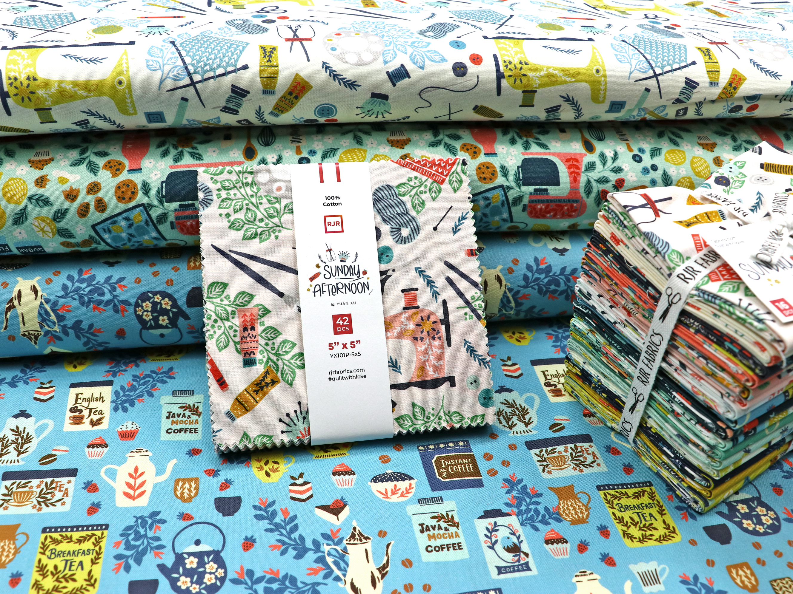 COTTON+STEELのSUNDAY AFTERNOONと、RJR FABRICSのcolors & cravingsをおためしサイズの4枚セットにしました。