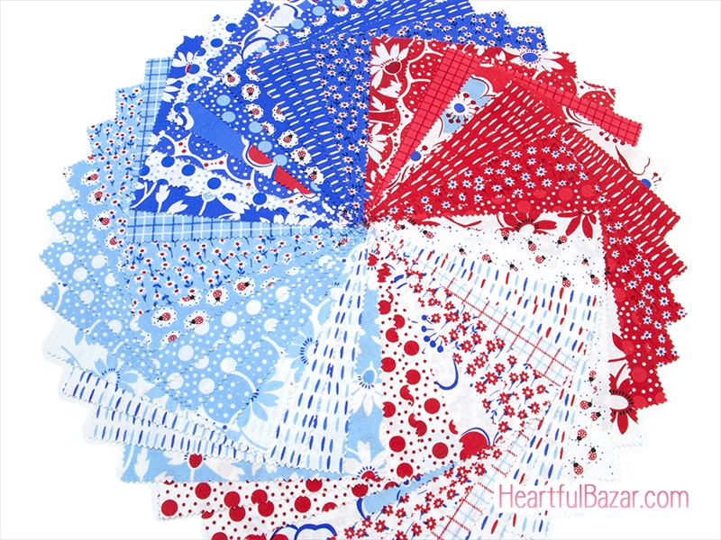 ヴィンテージのフィードサックを明るくクリアな白と赤と青で復刻したシリーズ。