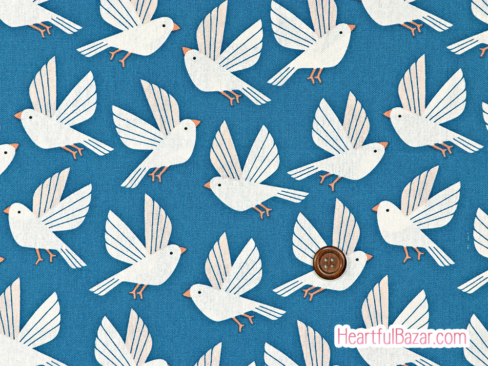 [oc]COTTON+STEEL Wild & Free 自由な鳥 綿麻キャンバス ミスティブルー