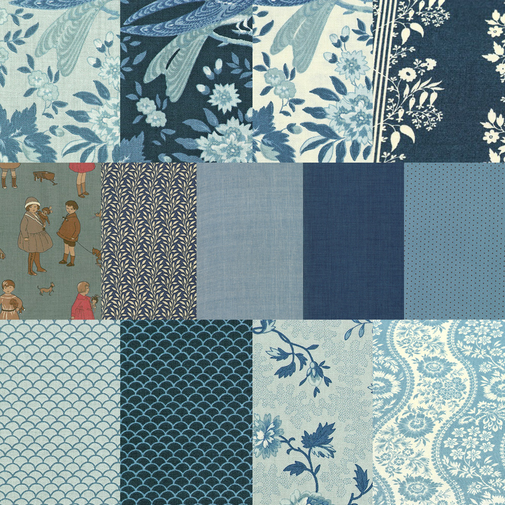(25x25)moda フレンチジェネラルの青 13枚セット